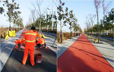 新型推刮而形成的彩色瀝青